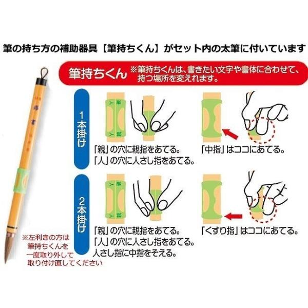 ◆セット内の太筆(修書)は筆穂の根元(腰部)まわりに新案耐水シートが巻いてあり、初心者の方には特におすすめです。
