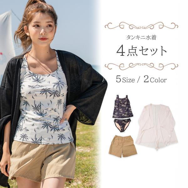 水着 タンキニ 体型カバー レディース 20代 30代 40代 50代 60代 ママ水着 ショートパンツ 上下4点セット 上着 大きいサイズ