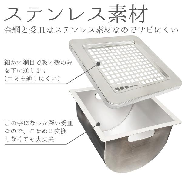 金網と水受け皿には錆びにくく耐久性の高いステンレス素材を採用。