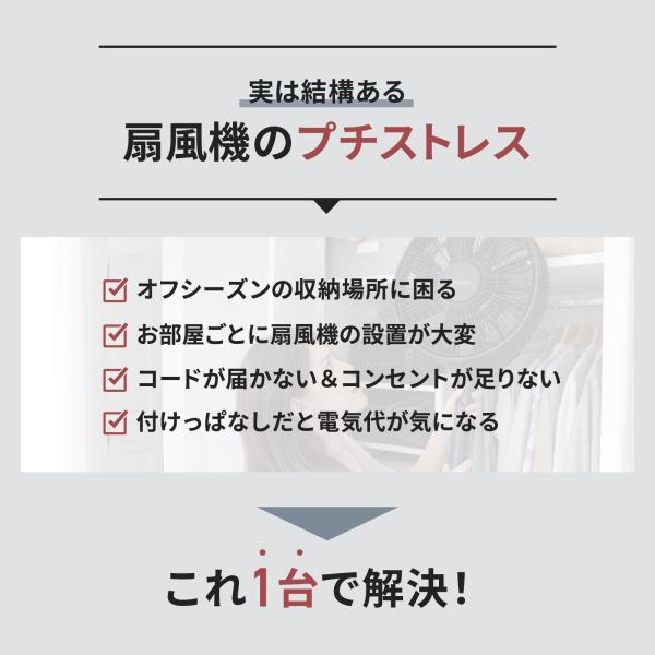 充電式コードレスで、屋内外どちらでも気軽に使える多機能扇風機です。