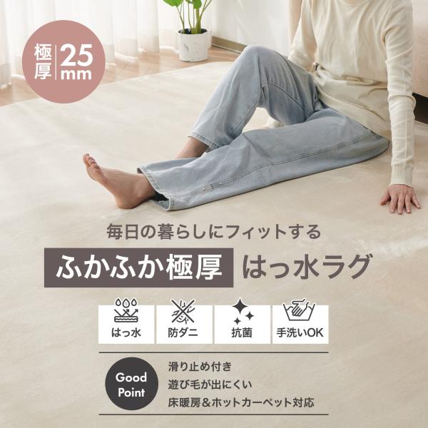 ラグ カーペット 洗える ラグマット フランネル 厚手 25mm 厚め 分厚い 極厚 撥水 はっ水加工 抗菌 防ダニ 洗えるラグ 滑り止め 防音 床暖房 ホットカーペット対応