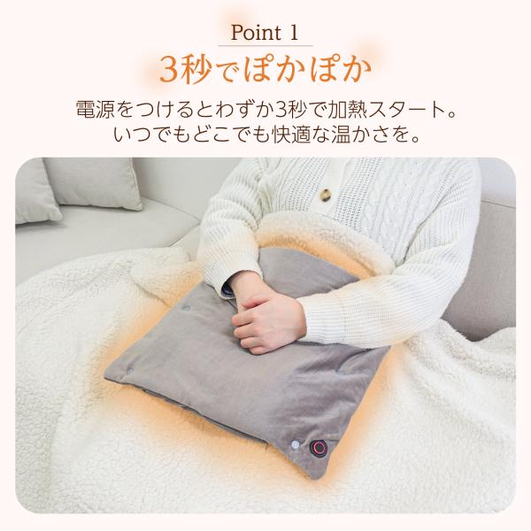 スイッチを入れてすぐにあたたかさを実感。冷えやすい季節や手足の冷え対策にぴったりで、使いたい時にすぐ活躍します。