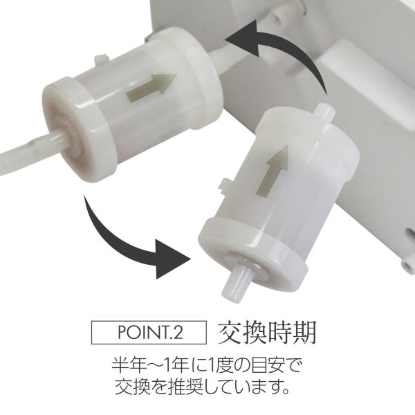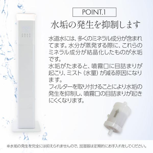 フィルターに通すことで水垢の発生を抑制し、綺麗な水蒸気で乾燥が気になる時期でも