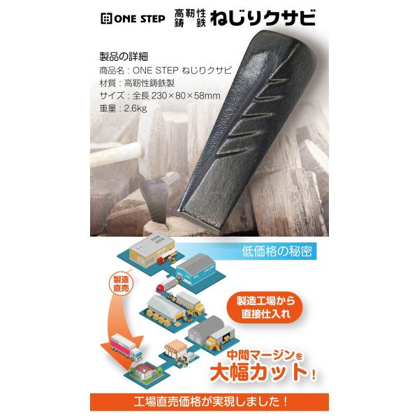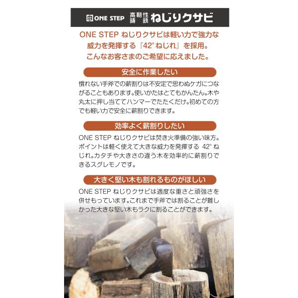 クサビ 薪割り 楔 ねじり くさび 薪ストーブ 鉄 打ち込み用 ハンマー アウトドア 焚火 ONE STEP