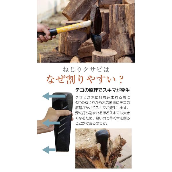ねじり 楔 薪割り クサビ くさび 薪割 ねじれ ねじり 捻り 小型 軽量 金属 ハンマー 槌