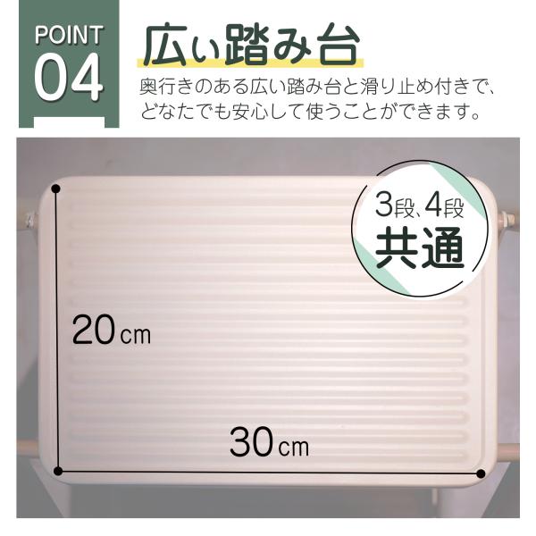 4段設計により安定感が高く、高所作業や昇り降りもスムーズです。