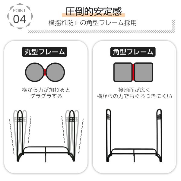 耐荷重600kgの頑丈なスチールフレームが、大量の薪を載せても高い安定性を実現します。