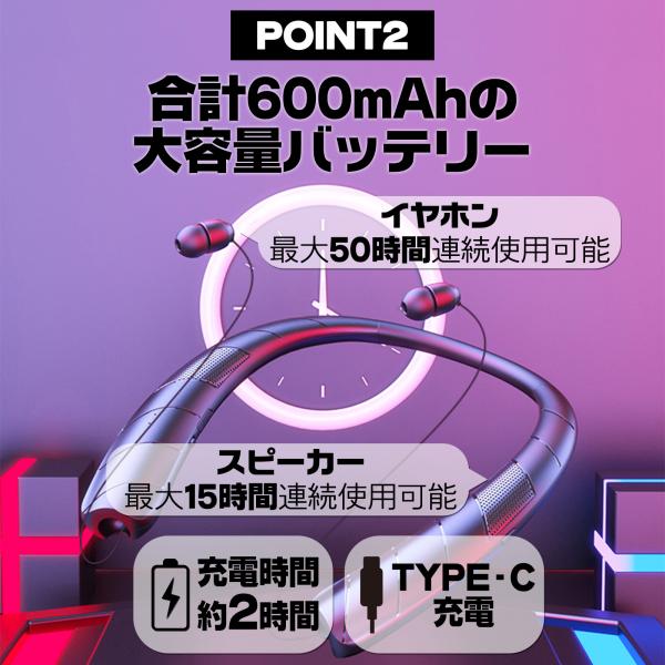 ネックバンド 首かけ 肩かけ スピーカー ブルートゥース 50時間連続使用可能 おしゃれ