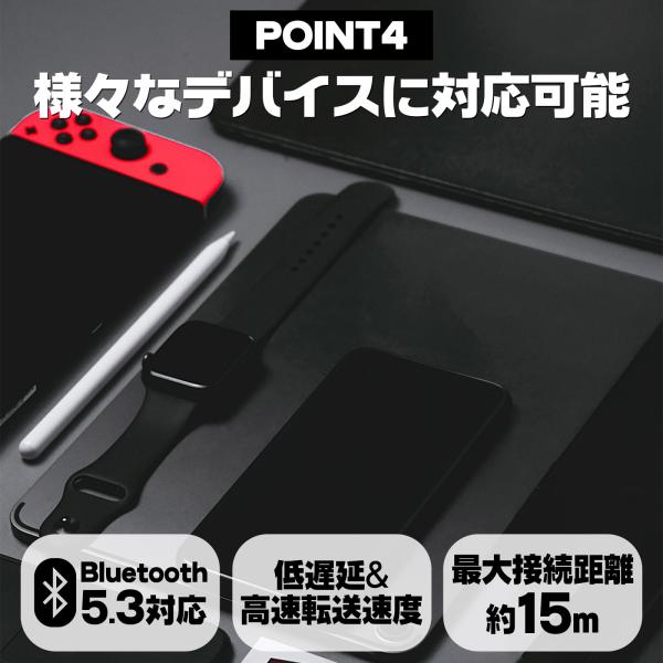 Bluetooth5.3を採用し、安定した高速通信を実現。有線の煩わしさを解消し、スマートフォンやタブレットと簡単にペアリング。