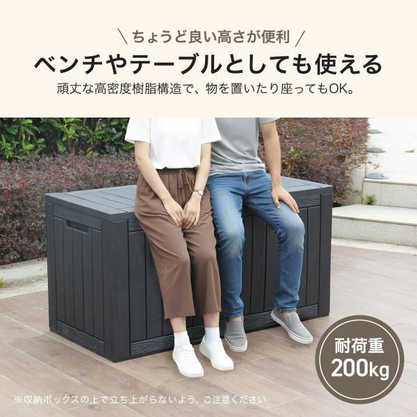 耐荷重200kgのしっかり設計で、収納だけでなくベンチとしても使用可能。