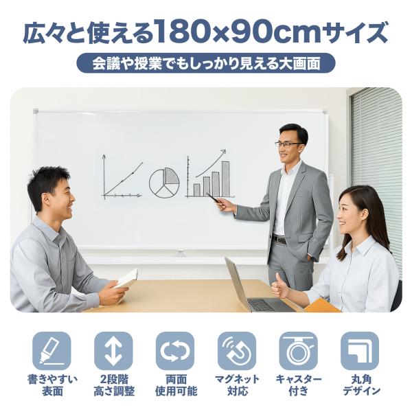 ホワイトボード 1800×900 脚付き マグネット 両面 高さ調節 昇降 キャスター付き 法人用 オフィス ビジネス SKK