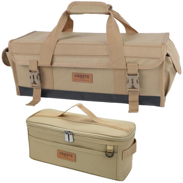 YOGOTO ペグ収納マルチコンテナボックス 収納ケース 大容量 多機能 収納ボックス アウトドア キャンプ (カーキ色/12L+5.5L-2点セット