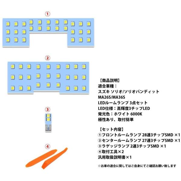 デリカD:2 LEDルームランプ ソリオ ソリオバンディット led セット 専用設計 室内灯 車内灯 6000K ホワイト 明るい カスタムパーツ 純正交換 取付簡単 1年保証