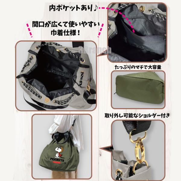 スヌーピー 2WAY ナイロン 刺繍 巾着バッグ ドロストバッグ レディース ドロスト ショルダーバッグ 巾着ショルダー 2WAYショルダー ドローストリングバッグ