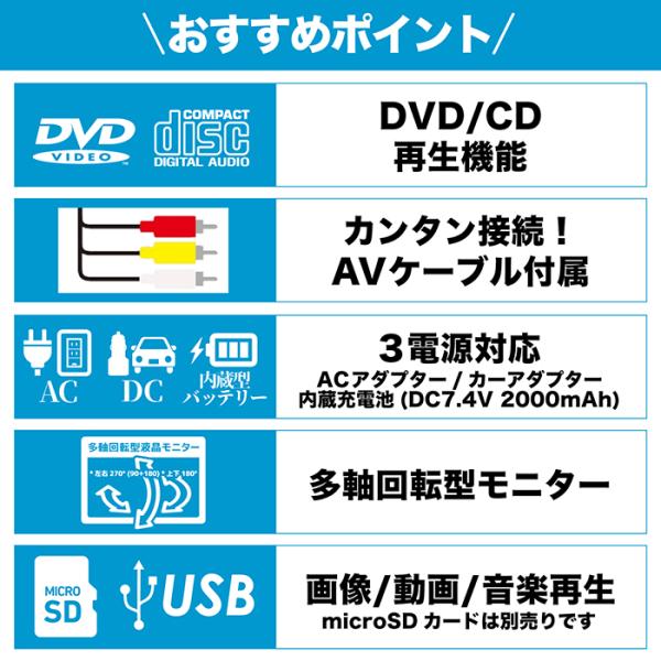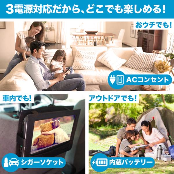 3電源対応で場所を選ばずDVDを大画面で!