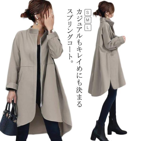 前開き 長袖 立ち襟 秋 ロングコート コート アウター 無地 OL スプリングコート トレンチコート レディース 上着 ジャケット 羽織り トップス