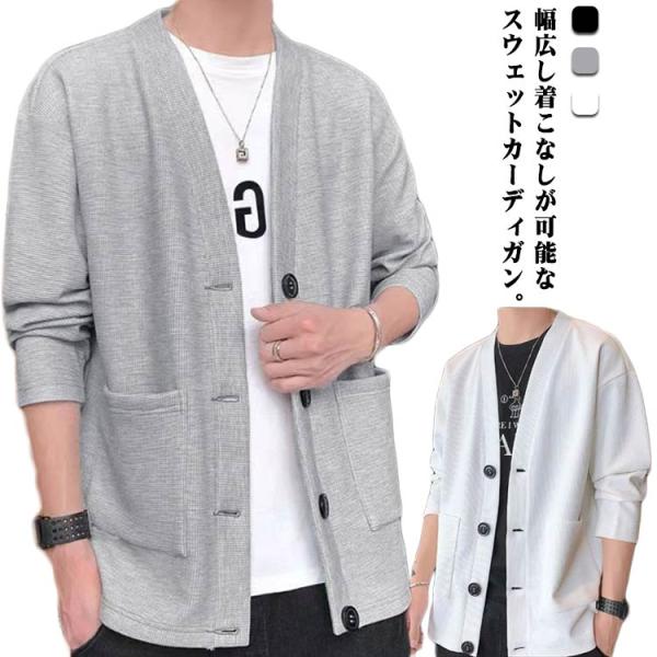 メンズ 男女兼用 スウェットカーディガン 羽織り パーカー 通勤 カーディガン Vネック ワッフル編み ライトアウター 通学 大きいサイズ カーディガ
