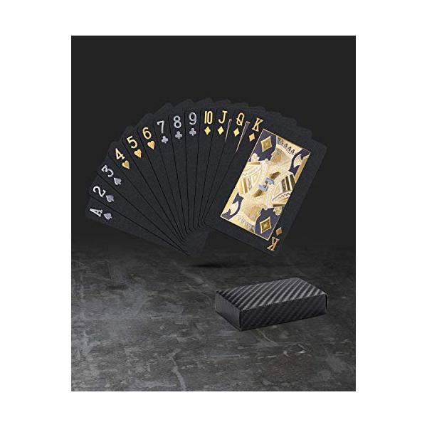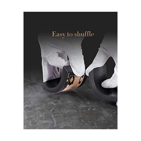 *トランプのデザインについて、全体的には黒地で、裏側に人気のダイヤモンドの模様があります、とても上品に見えます。旧版に比べて、新版トランプの図柄がナノ工芸を採用して印刷されるため、カードを光沢とエレガントにし、より豪華に見えます。