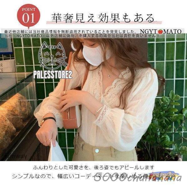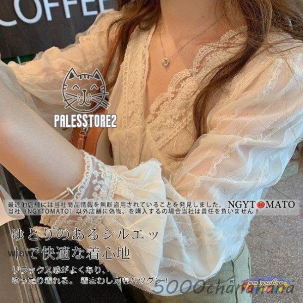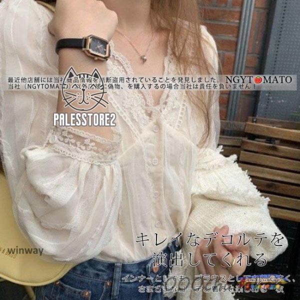 ブラウス レディース インナー シャツ 長袖 総レース 上品 薄手 トップス 春コーデ 透け感 ゆったり 体型カバー おしゃれ きれいめ 可愛い 通勤 OL