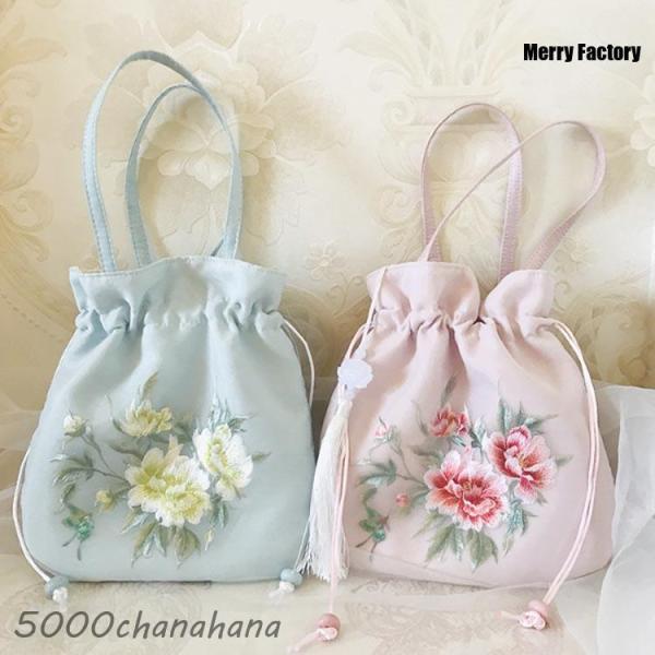 巾着バッグ 振袖用 浴衣用 刺繍 花柄 きつね うさぎ 振袖バッグ 袴バッグ 浴衣バッグ 和装バッグ 手提げバッグ 巾着袋 ショルダーバッグ 斜め掛け