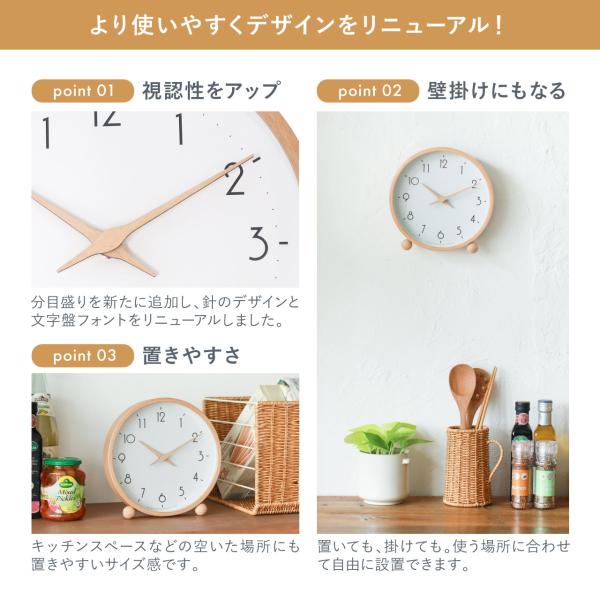 木製の針と曲木フレームが、上質であたたかみのあるCAMPAS掛け時計。 ホワイト/グレージュ/ネイビーの3色、S・Lの2サイズ展開で、お部屋に合わせて選べます(※本ページはSサイズ)。さらに、【足つきのスタンド型タイプ(ホワイト)】が新登場。置き時計としてはもちろん、壁掛けとしても使用可能。化粧箱入りでギフトにもおすすめです!