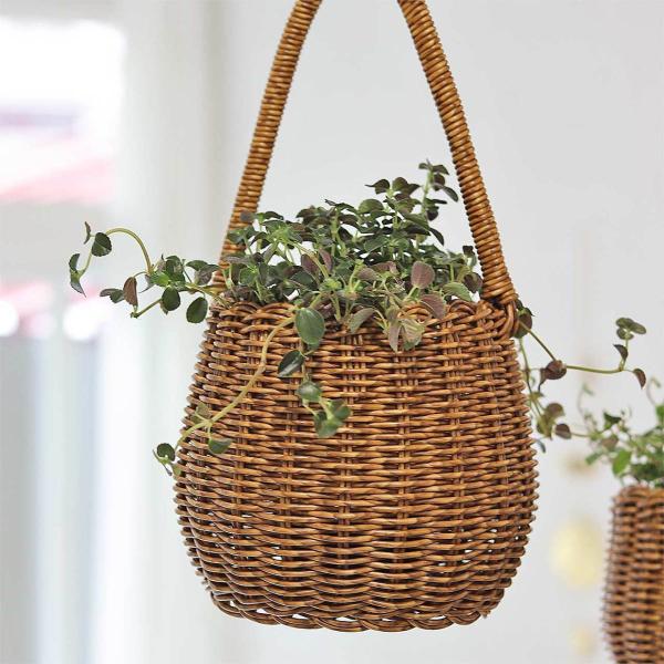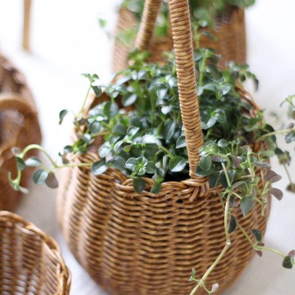 水洗いができる、見た目と機能性にこだわった手編みのバスケット。見た目はまるで天然素材のバスケットのよう。 ナチュラルな雰囲気のお部屋にぴったりのデザインです。汚れても水洗いが出来るので、観葉植物用のポットとしてもおすすめ。 (Lサイズは、鉢サイズφ130mmまで対応) 長めのハンドル付きなので、S字フックなどで手軽に飾ることが出来ます。植物用のポットとしてはもちろん、散らかりがちな小物類の収納にもおすすめ。