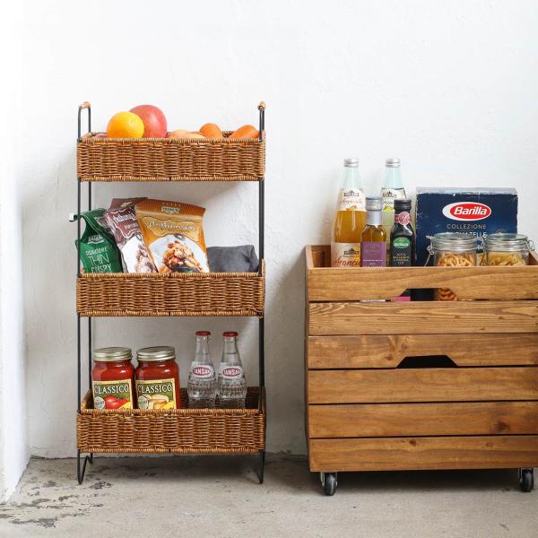 公式 キッチン収納 ラック 2段 3段 スリム ラージ サイドテーブル 省スペース 収納ラック ユティル 3段ラック ナチュラル シンプル クレエ IGF 購入特典付