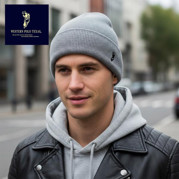 Western POLO ニット帽 メンズ ニットキャップ ブラック グレー polo124 今ならもう一枚プレゼント中