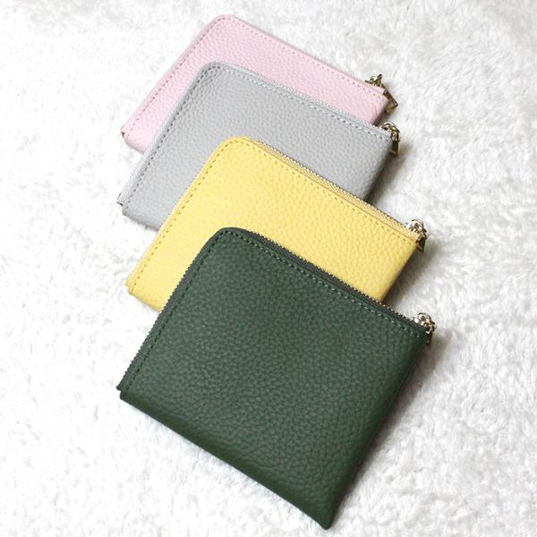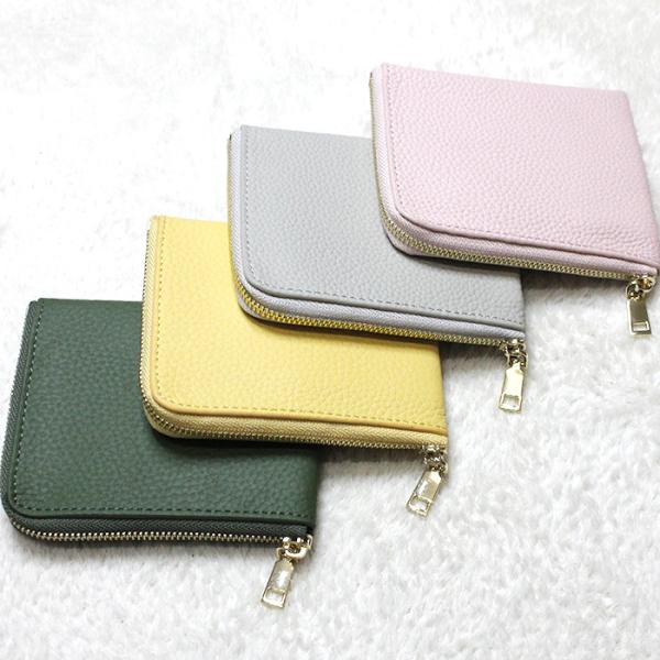ミニ財布 L字ファスナー コンパクト 本革 レザー ピンク イエロー グリーン グレージュ zakka225 爆買