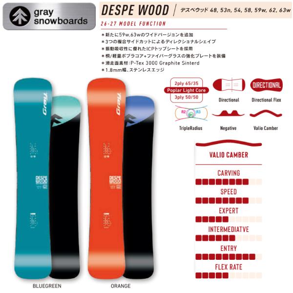 予約受付中 特典あり GRAY 2026/2027 グレイ DESPE WOOD デスペウッド スノーボード 板 ハンマーヘッド ラントリ カービング 正規品