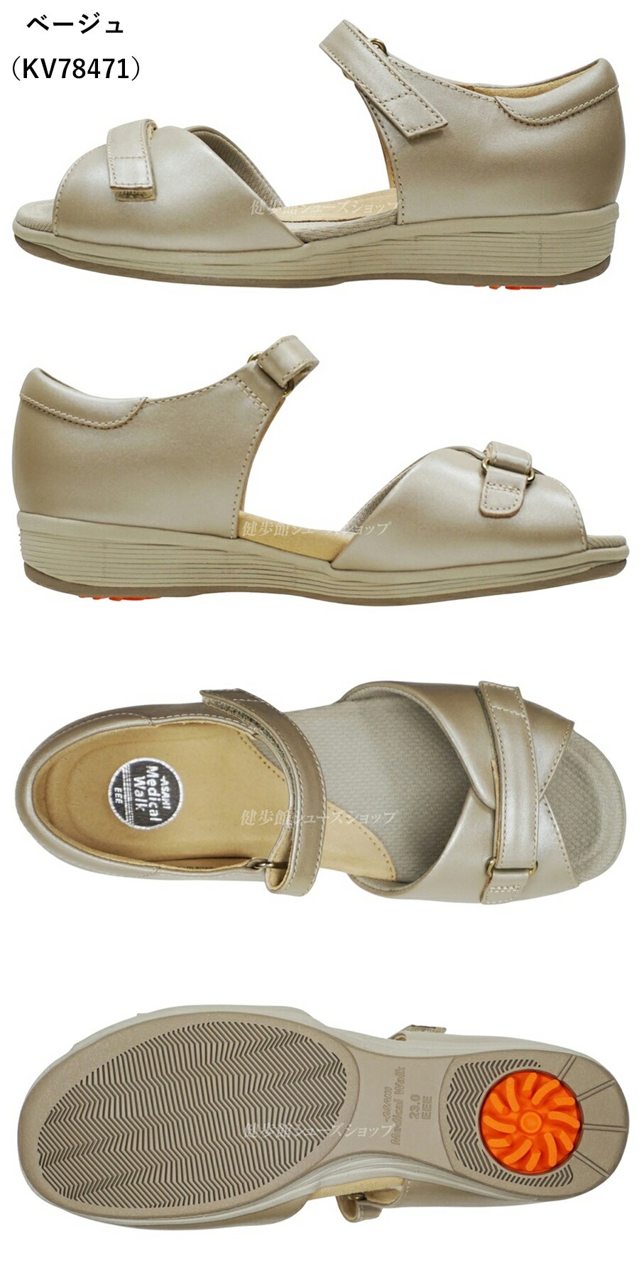 アサヒ メディカルウォーク レディース サンダル SL L002 KV7847 ベージュ ブラック ホワイト 3E 全3カラー
