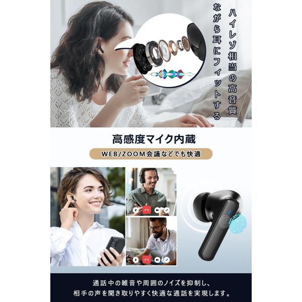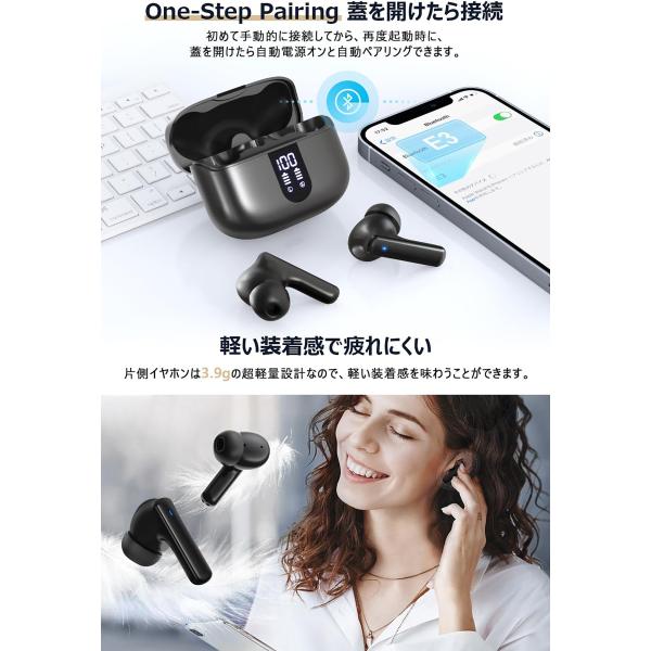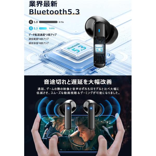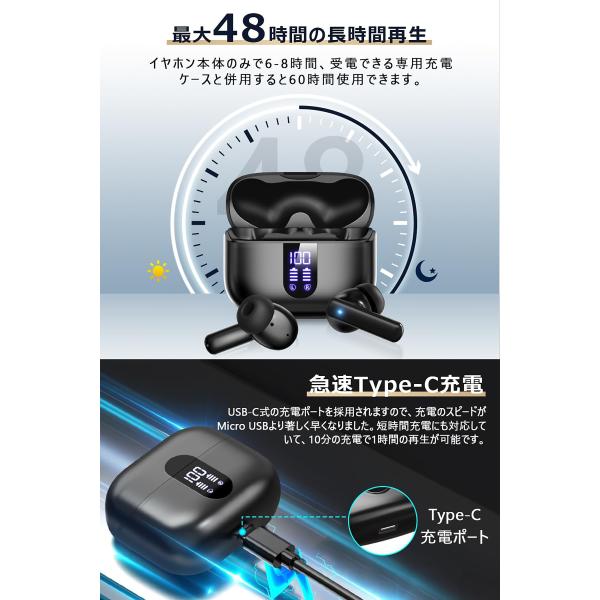 ワイヤレスイヤホン bluetoothイヤホンBluetooth5.3 蓋を開けたら接続 LED表示 Type‐C急速充電 マイク付き 最大48時間再生 重低音 Hi-Fi 自動ペアリング