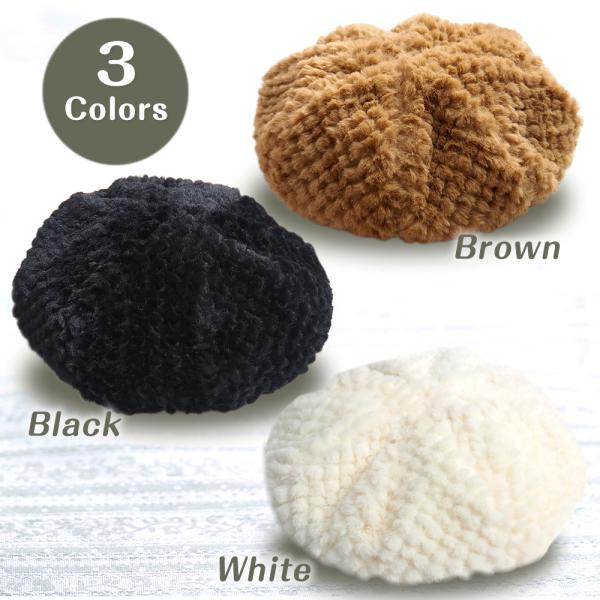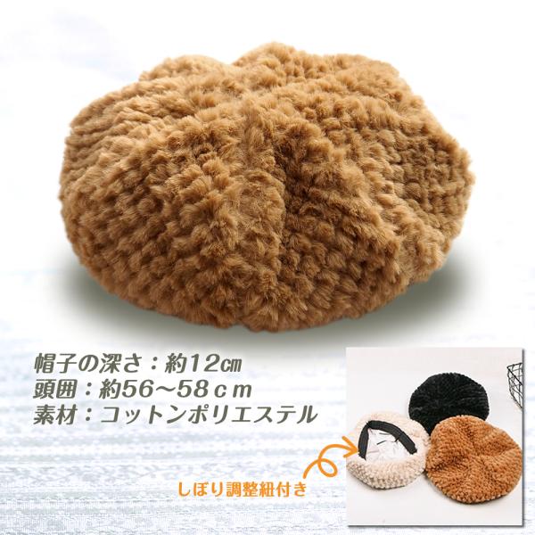 ベレー帽 レディース ふわふわ もこもこ かわいい 秋冬 防寒 暖かい ブラック ホワイト キッズ 調整可能