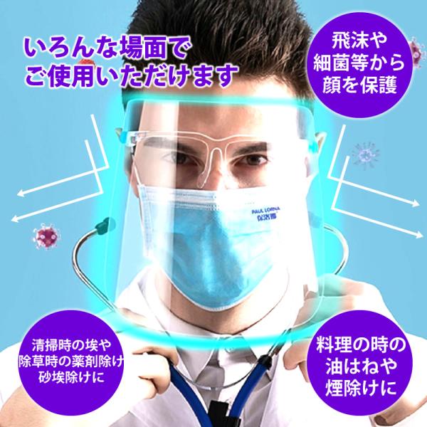 フェイスシールド メガネ型 メガネタイプ フェイスガード ウイルス対策 飛沫防止 歯科 医療 飛沫対策 くもり止め 曇らない