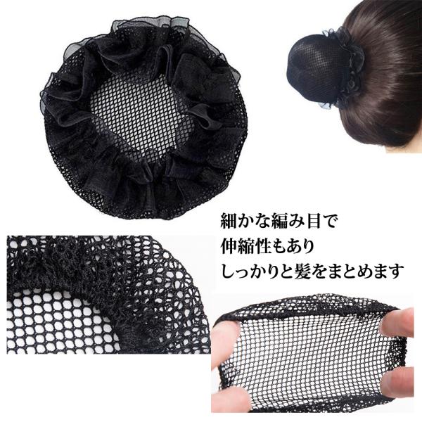 ヘアネット ヘアーネット 3枚/6枚セット Uピン5本/10本付き シニヨンネット 黒 食品工場 衛生 厨房 お団子ヘアー CA まとめ髪