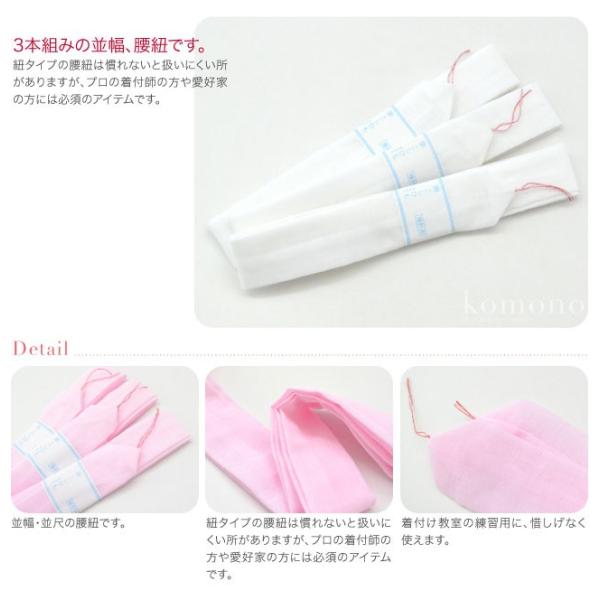 腰紐 仮紐 通年用 綿モスリン 腰紐 3本組 着付け小物 着物 腰ひも こしひも レディース