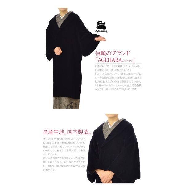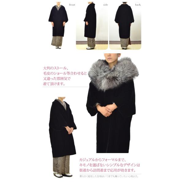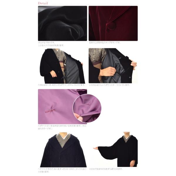 着物 コート 和装 防寒 冬用 日本製 アゲハラ ベルベット へちま衿 コート 無地 塵除け ヘチマ襟 洋装兼用 仕立て上がり レディース