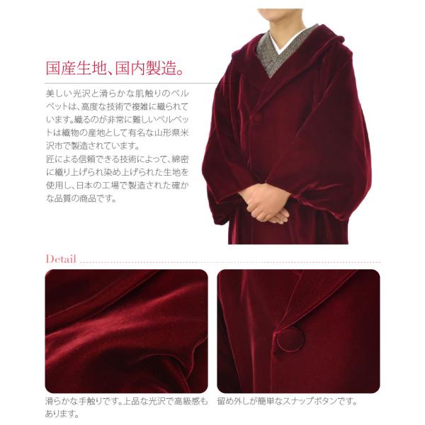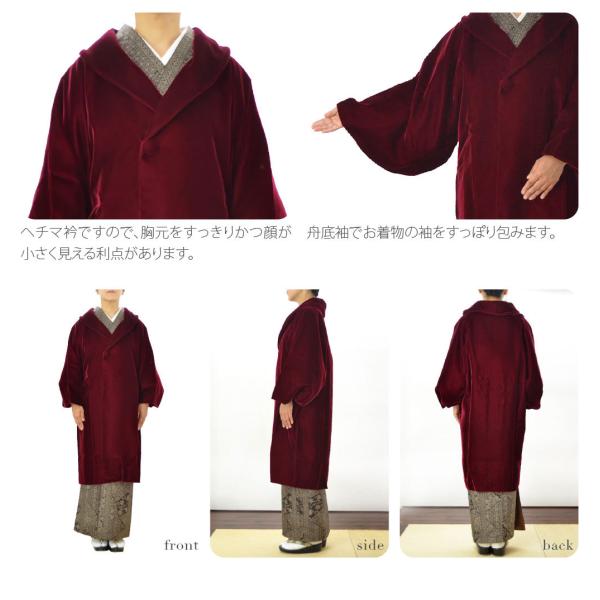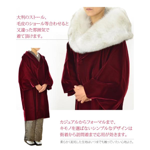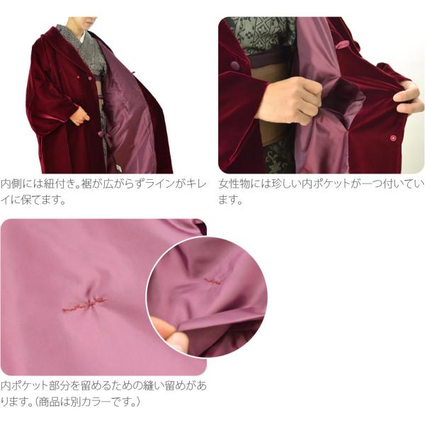 着物 コート 和装 防寒 冬用 日本製 アゲハラ ベルベット へちま衿 コート 無地 塵除け ヘチマ襟 洋装兼用 仕立て上がり レディース