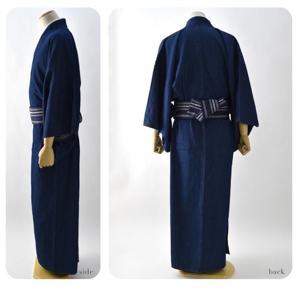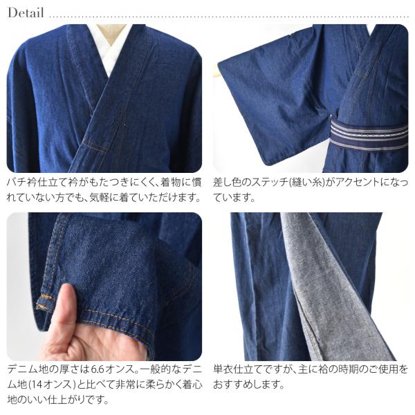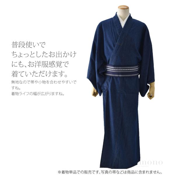 洗える 木綿 着物 単品 袷用 単衣用 男物 デニム 着物 無地 別誂え 仕立て上がり シンプル シック かっこいい メンズ