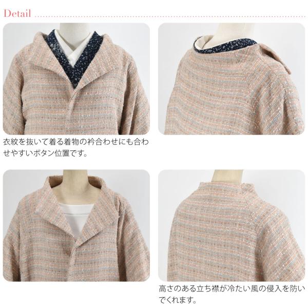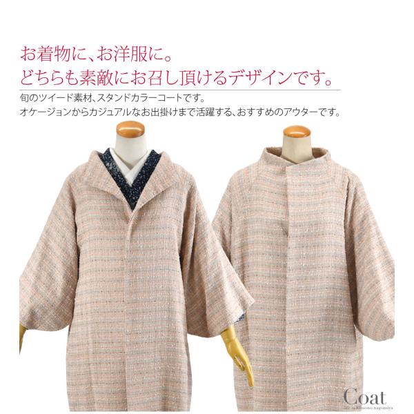 着物 コート 和装 防寒 冬用 日本製 ツイード ウール 着物コート スタンドカラー 塵除け 立て衿 洋装兼用 仕立て上がり レディース