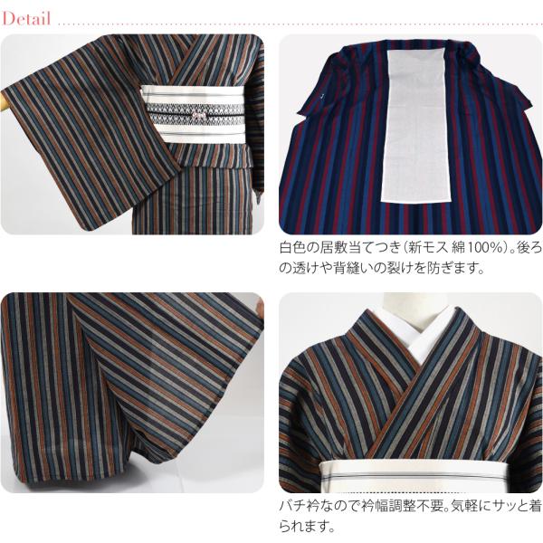 洗える 木綿 着物 単品 単衣用 日本製 WASOUL 阿波しじら織 着物 浴衣 居敷当付 仕立て上がり レトロ 古典柄 シック かっこいい レディース