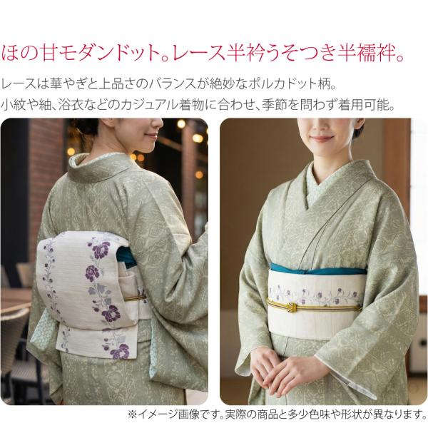 半襦袢 うそつき 襦袢 通年用 日本製 WASOUL レース 半襦袢 ポルカドット レース 半衿付き 肌襦袢 襦袢袖 衣紋抜き付 レディース