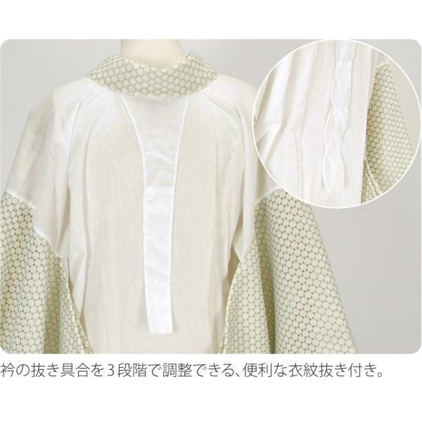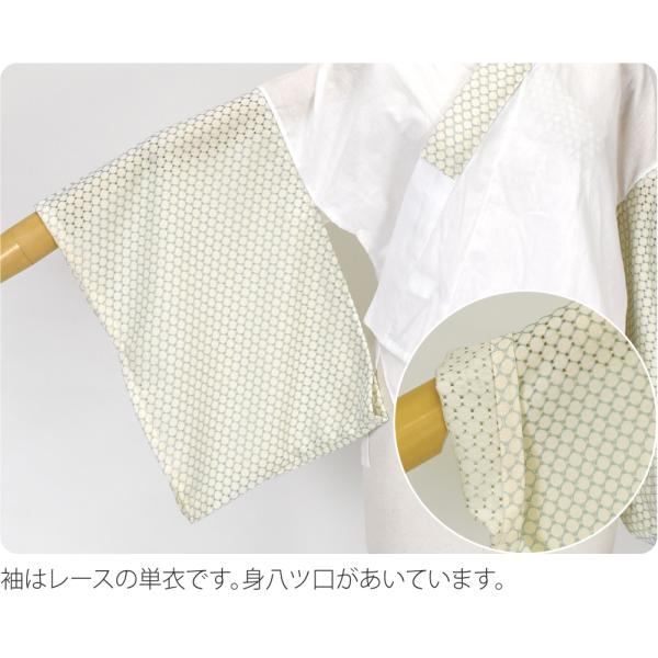 ●身頃:綿 袖:単衣 レース 衣紋抜き:3段 胸紐:なし 半衿:レース ミシン 衿芯装着:可 居敷当:なし