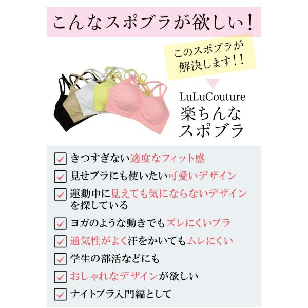 スポーツブラ スポブラ 楽ちん ジム ジュニアブラ 中学生 かわいい 見せブラ ヨガ ナイトブラ 運動 部活 運動 おうち ルームウェア ルルクチュール