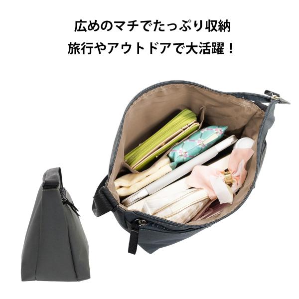広めのマチでたっぷり収納できるショルダーバッグです。