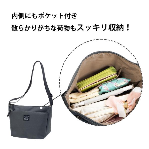 ショルダーバッグ レディース ポシェット スマホ 大容量 撥水加工 ファスナー付