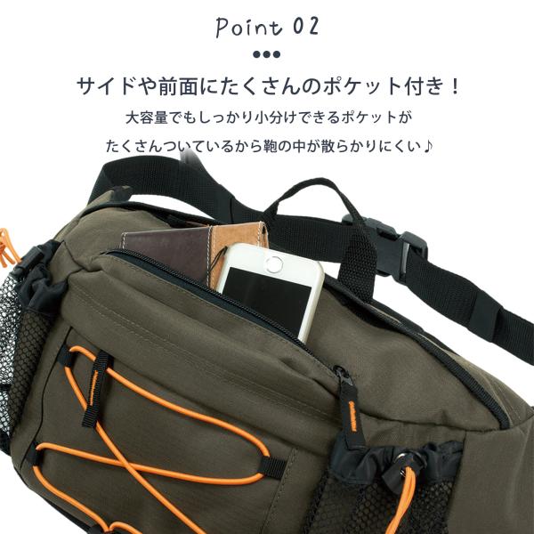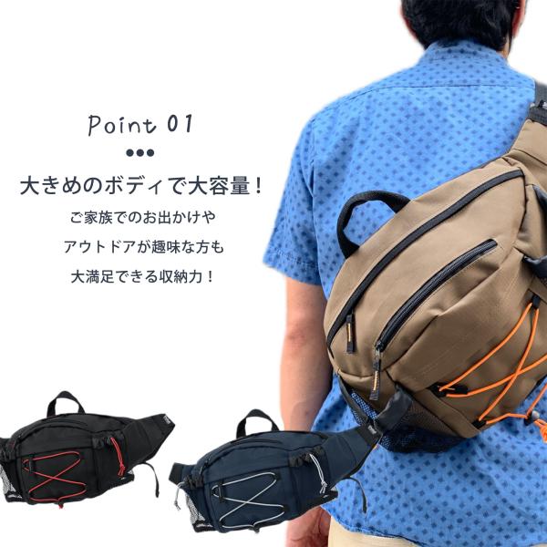 ご家族でのお出かけやアウトドアが趣味の方も大満足できる収納力抜群のボディバッグです。