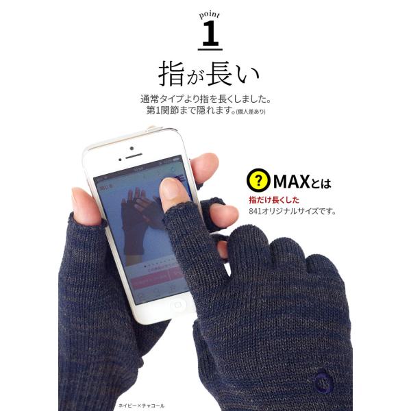 ハンドウォーマーMAX 指長 手袋 スマホ手袋 指なし レディース メンズ インナー スマホ対応 アウトドア 通勤 綿 防寒 保湿 暖かい 日本製 冬 黒 薄手 841