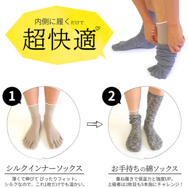3足セット シルク インナーソックス 5本指ソックス レディース メンズ 絹5本指 冷えとり靴下 冷え取り靴下 フットカバー 防寒 消臭 蒸れない 夏 冬 日本製 841
