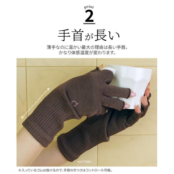 上質シルクハンドウォーマーMAX 指長 手袋 スマホ手袋 指なし レディース メンズ 手荒れ 保湿 おやすみ 防寒 UVカット 作業 作業用 暖かい 高級 日本製 冬 841